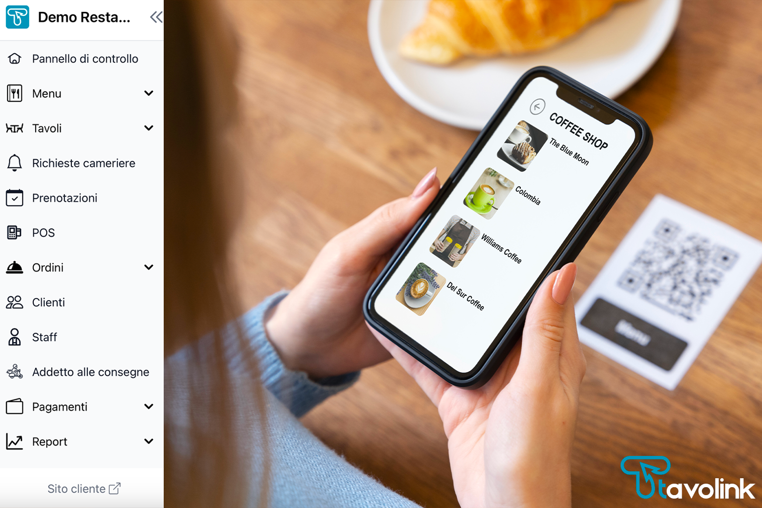 Con la versione base di Tavolink puoi creare un menu digitale con QR code personalizzato, facilmente aggiornabile in autonomia e senza bisogno di competenze tecniche. Le versioni Pro offrono strumenti avanzati per la gestione completa del tuo locale.